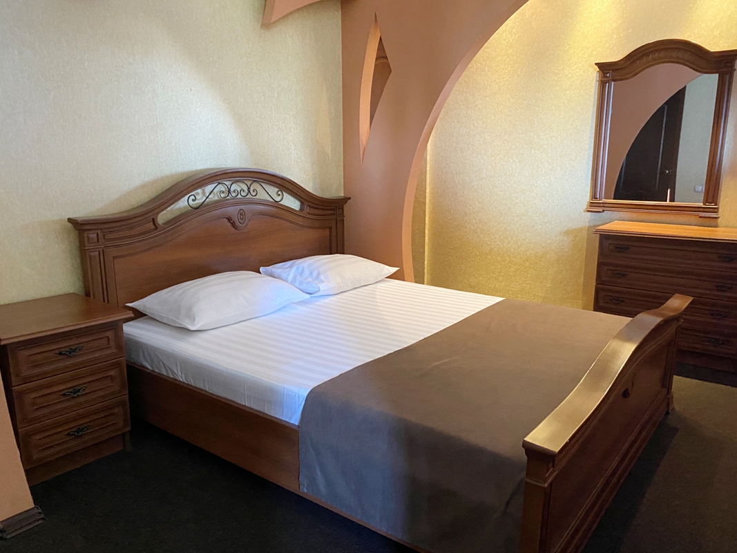 В номерном фонде отеля 17 номеров. Они оборудованы для удобства гостей и сочетают в себе современный дизайн с уютной атмосферой. Каждый номер оснащен комфортабельной мебелью, что обеспечивает максимальное расслабление после насыщенного дня. Гости могут насладиться бесплатным Wi-Fi, телепрограммами на различных языках и холодильником. Особое внимание уделено санитарным условиям: ванных комнатах установлены современные душевые кабины и качественная сантехника. В отеле предусмотрены различные категории номеров – от стандартных до люксов, чтобы удовлетворить потребности всех клиентов. Интерьеры выполнены в теплых тонах, создающих атмосферу уюта и спокойствия. Панорамные окна открывают живописные виды на окрестности, позволяя гостям наслаждаться природой даже изнутри.