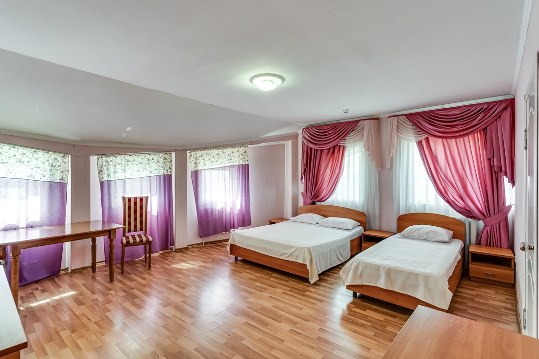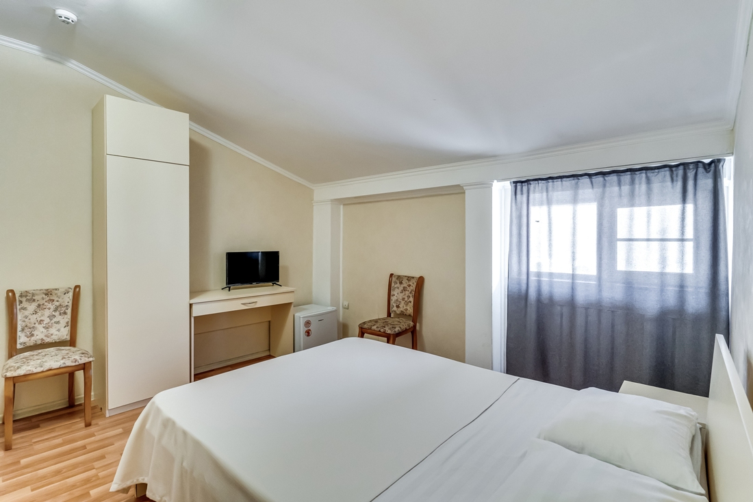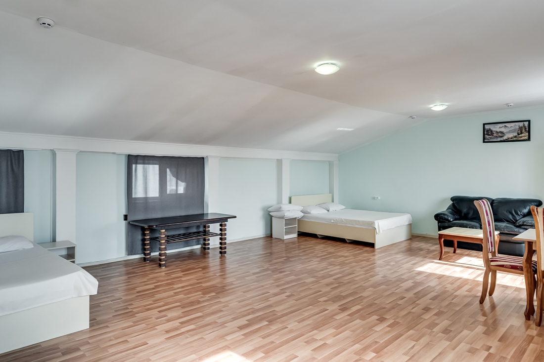 Наш номерной фонд состоит из 15 номеров, среди которых есть как однокомнатные – для одного-двух человек, так и двухкомнатные, рассчитанные на размещение семей или компаний из четырёх-пяти человек.