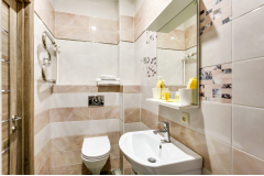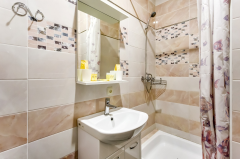 В номере есть свой санузел с душевой кабиной, так же предусмотрены тапочки, полотенца, гигиенические средства в ванной. При необходимости предоставляется фен. Для создания комфортной температуры в помещении вы всегда сможете воспользоваться встроенной сплит-системой.