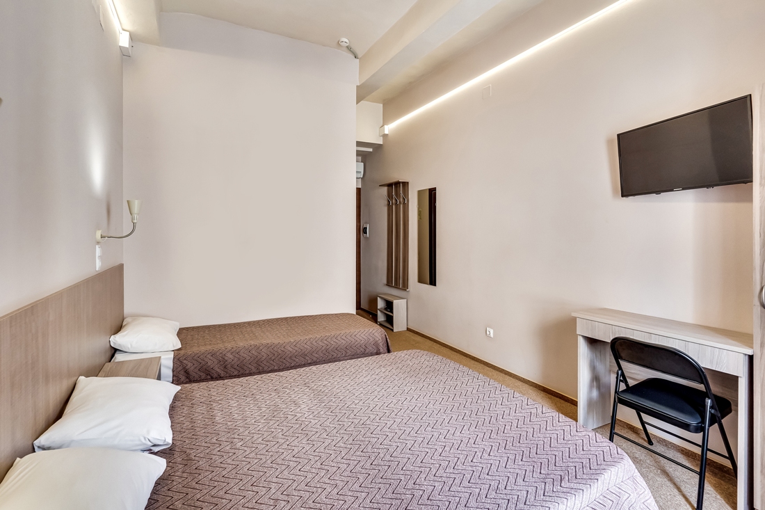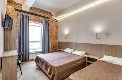 Трехместный представляет собой небольшой уютный номер со всеми удобствами. Для гостей Лофт-отеля "Набоков" оборудована прекрасная кухня-столовая, где можно приготовить еду и вкусно поесть, выпить чашечку кофе или чая, пообещаться с другими гостями отеля и приятно провести время. Чай, растворимый кофе, сахар - комплимент от Лофт-отеля "Набоков"