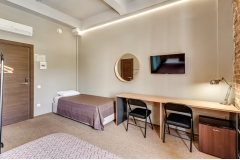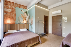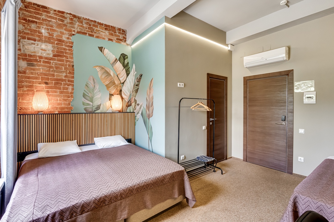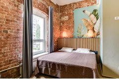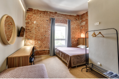 Делюкс - это просторный многоместный номер, в котором комфортно может разместится семья из 3 человек. В номерах Делюкс две односпальные кровати (90 см. х 200 см.) и одна двухъярусная (спальное место 90 см. х 200 см.) или большая двуспальная кровать (180 см. х 200 см.) и одна двухъярусная (спальное место 90 см. х 200 см.). Санузел находится в номере. Каждому гостю предоставляется комплект из 3-х полотенец. В номере отсутствует телевизор. Телевизоры есть в холле и столовой. На всей территории отеля бесплатный WI-FI. В Лофт-отеле "Набоков" оборудована просторная и уютная кухня-столовая, где можно приготовить еду, разогреть обед, выпить чашечку кофе или чая, приятно провести время с книжкой. Кофе, чай, сахар - комплимент от Лофт-отеля "Набоков"