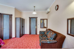 Двухместный номер площадью 27 кв.м, в котором комфортно может разместится 2-е человек. Хотим обратить внимание что номера данной категории на четвертом этаже. В номерах данной категории одна двуспальная кровать. Каждому гостю предоставляется комплект из 2-х полотенец. В номере телевизор. На всей территории отеля бесплатный WI-FI. Кофе, чай, сахар - комплимент отеля.