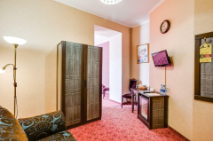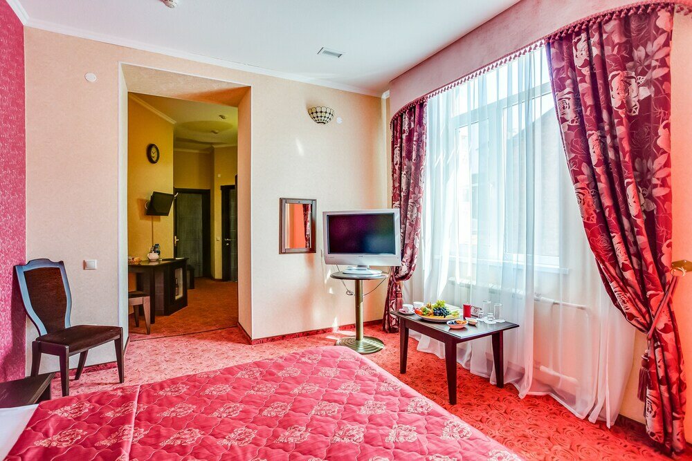 Семейный двухкомнатный номер площадью 35 кв.м, в котором комфортно может разместится 4-е человека. В номерах данной категории одна двуспальная кровать. Каждому гостю предоставляется комплект из 2-х полотенец. В номере телевизор. На всей территории отеля бесплатный WI-FI. Кофе, чай, сахар - комплимент отеля.