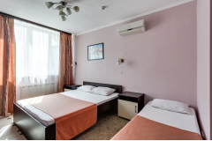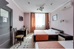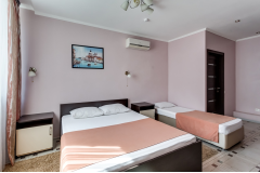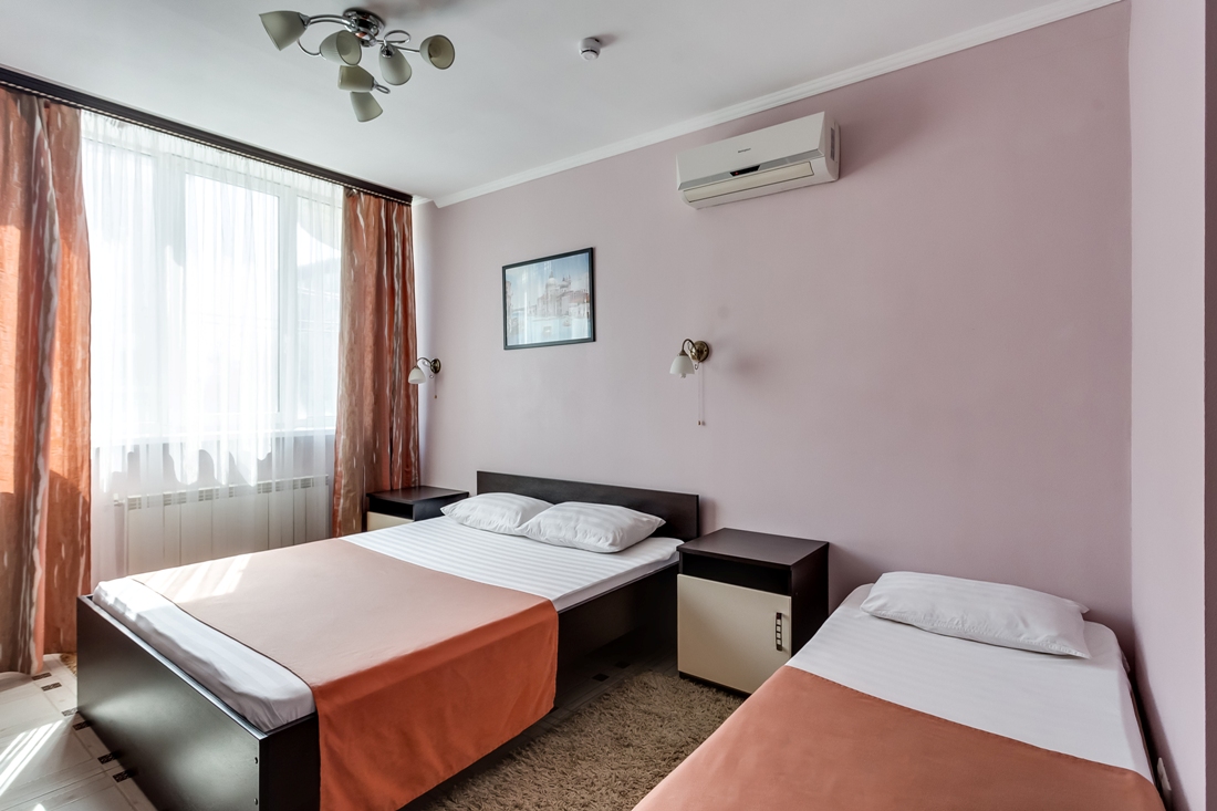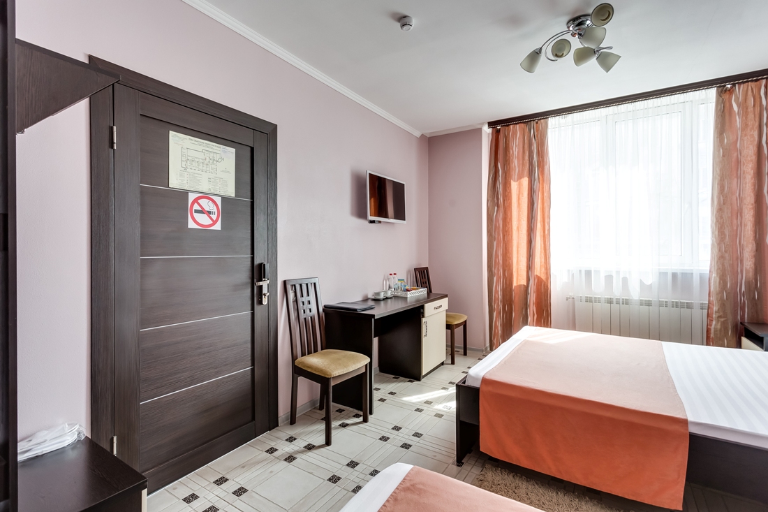 ЖК-телевизор.  сплит-система, две односпальные кровати, холодильник, письменный стол, стулья.