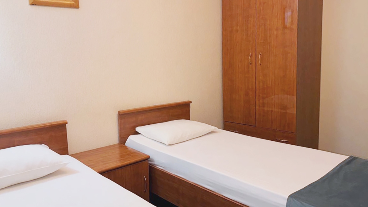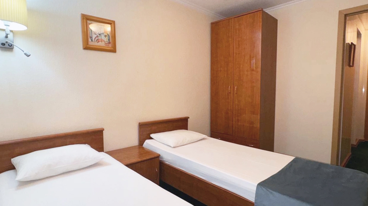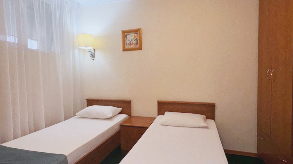 Стандартный номер с двумя односпальными кроватями. Площадь номера 16 кв. Номер оборудован собственной ванной комнатой, телевизором и кондиционером. В номере находятся: письменный стол, зеркала и прикроватные тумбочки. Гостям предоставляются туалетные принадлежности, а так же на территории отеля есть бесплатный wi-fi.